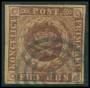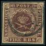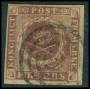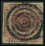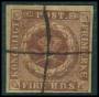 1851. 4 RBS pl. I-15 Ferslew 1b, blækannulleret. Attest CAM og udtalelse Paaskesen.