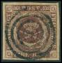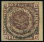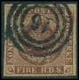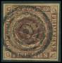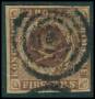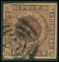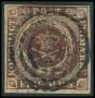 1851. 4 RBS pl. II-30 Ferslew 1a, tæt klippet i højre side. Attest Jørgensen.