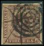 1851. 4 RBS pl. II-26 Ferslew dobbeltannulleret med blækkryds og stumt stp.