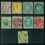 1877-93. Planche med diverse posthorn antiqua inkl. perfin og takninger m.m.
