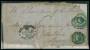 VICTORIA. 1854. 1 sh. blå (x2) på brev til England. Lettere medtaget i øvre højre hjørne og med folder, ellers relativt pænt brev, med smukt 11 MY LIVERPOOL SHIP ankomststempel i grøn farve på bagside...