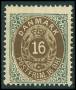 1875. 16 øre grå/brun tryk 13 og 16 pos. bestemt.