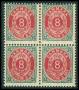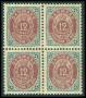 1895. 12 øre grå/rødlilla i 4-blok med omv. vm.
