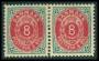 1895. 8 øre grå/rød tryk 96 pos. A1-2 i par med ret og omv. rm. Udtalelse LN.