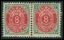 1895. 8 øre grå/rød tryk 96 pos. B49-50 i par med ret og omv. rm. Udtalelse LN.