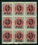 1904. 4/8 øre provisorier i 9-blok med variant: Hage på 4.