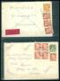 EXPRESBREVE. Planche med 3 breve og en telegram påtegnet URGENT = ekspres.