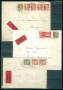 2. VERDENSKRIG. Planche med tre censurbreve med spor af den røde etiket, der indikerede, at brevene skulle til yderligere kontrol (censur). Det ene brev har stemplet "Innehåller ostämpade frimärken".