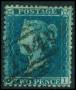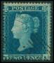 1855. 2 d. blå med forskudt vm. mod venstre. SG. (35) 70 £