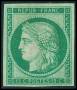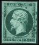 1849. 15 c. grøn uden lim med lille tyndhed. AFA 160000,-