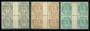 1901. 1, 4 og 5 c. i gutterpair 4-blokke, nedre par i 5 c. med fold.