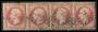 1862. 80 c. karmin i vandret 4-stribe, venstre mærke med lille rift. AFA 1800,-