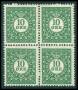 1926. 10 øre grøn i 4-blok med variant: Afskåret fod på 1.