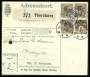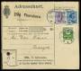 1925. 5 øre brun og 20 øre brun x 3 på adressekort fra Thorshavn, arkivhul i venstre side.