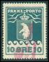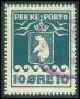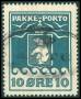1937. 10 øre grønblå med ovalt stp. Agto. (34.01).