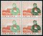 KINA. 1969. 10 F. 4-blok med fejlfarve: Grøn soldat i de 2 venstre mærker, sjælden.