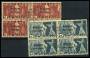 TJENESTE. 3 fr. rød og 5 fr. blå i 4-blokke overtrykt Société des Nations. AFA 4000,-