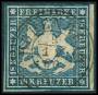 WÜRTTEMBERG. 1859. 18 kr. blå, berørt. Sign. (lidt højt) BPP.