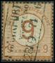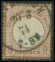 1872. 9 kr. rødbrun, Stort brystskjold. Smukt stemplet mærke, sign højt BBP (Sommer BPP a), på grund af absolut minimal rift i syd. AFA 3.350,-