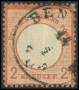 1872. 2 kr. orangegul med fejl. AFA 25000,-