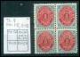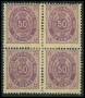 1898. 3 c. blå/rød omv. rm. tryk 9 pos. 1-2/11-12 i 4-blok. AFA 800,-