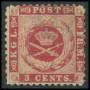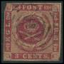 1856. 3 c. mørkkarmin, brun gummi, beklippet i nv.