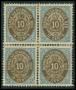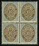 1888. 10 c. blå/brun i 4-blok. AFA 3000,-