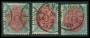 1873. 3 c. tofarvet tryk 1 - 3 med fejl. AFA 3350,-