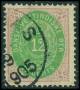 1873. 1 c. grøn/purpurlilla tryk 1.UDGÅR ikke tryk 1.