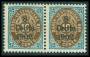 1902. 8/10 c. blå/brun i par med ret og omv. rm.