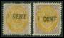 1887. 1/7 c. lilla/gul omv. rm . x 2 med fejl. AFA 2600,-