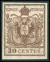 LOMBARDIET-VENETIEN. 1850. 30 c. brun fra Album De Facimiles med officielle forfalskninger udgivet af Philatelist Unionen i Geneve i 1928 i et oplag på kun 500 stk.
