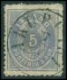 1875. 5 aur blå linietakket med tyndhed.